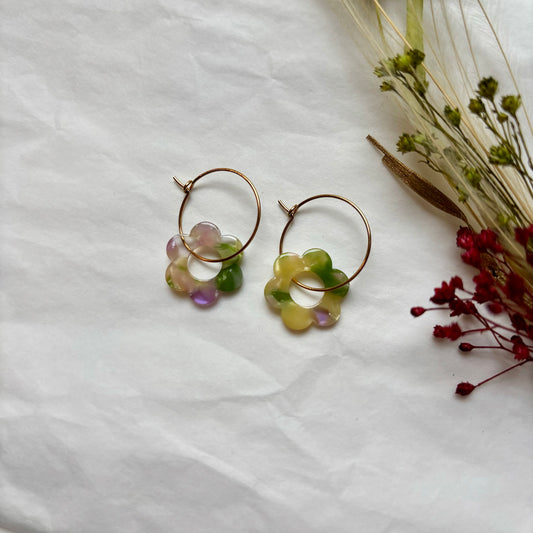 Boucles d’oreilles Puce Coeur moucheté blanc et or