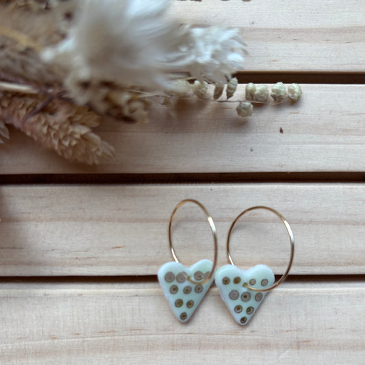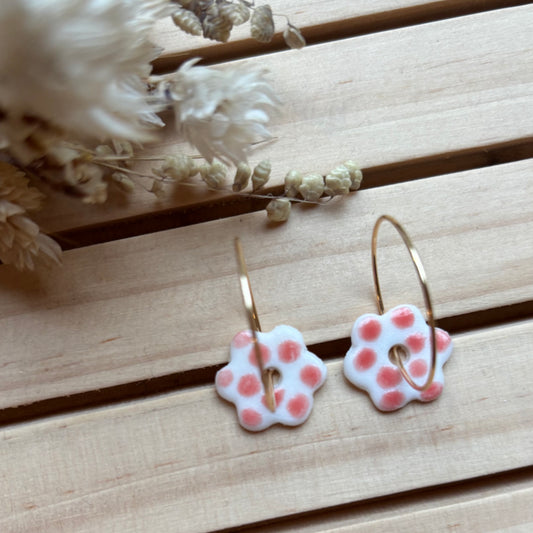 Boucles d'oreilles en céramique fleurs blanche et rose