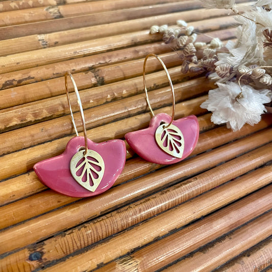 Boucles d'oreilles en céramique jupe rouge et feuille