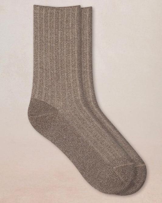 Chaussettes Lurex à côtes taupe & argent T36/40