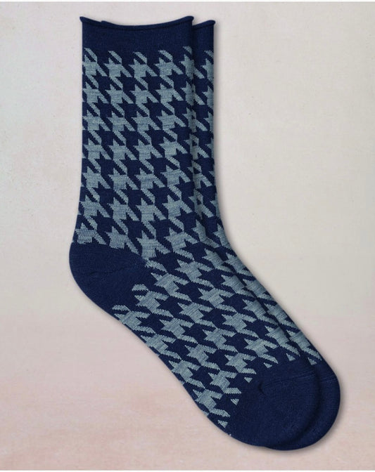 Chaussettes laine fine pieds de poule marine T36/38 / T39/41