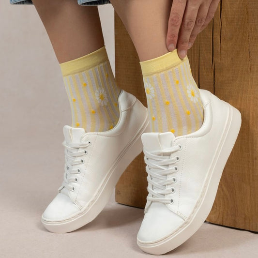 Chaussettes Courtes Rayures Marguerites Jaune Pâle T36/38 / T39/41