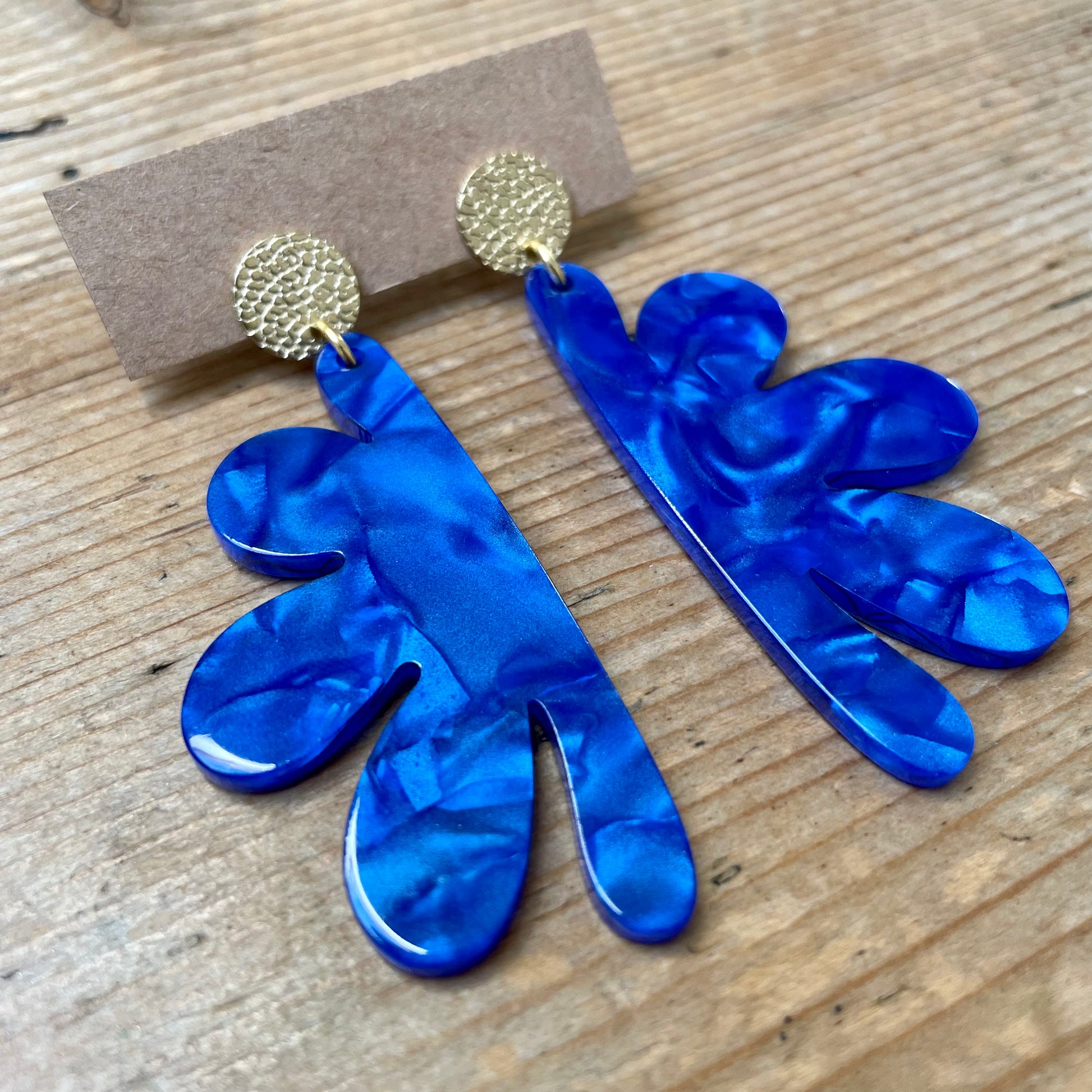 Boucles d'oreilles en acétate de cellulose. L'acétate de céllulose est une matière noble, obtenue à partir d'extrait de fleur de coton.