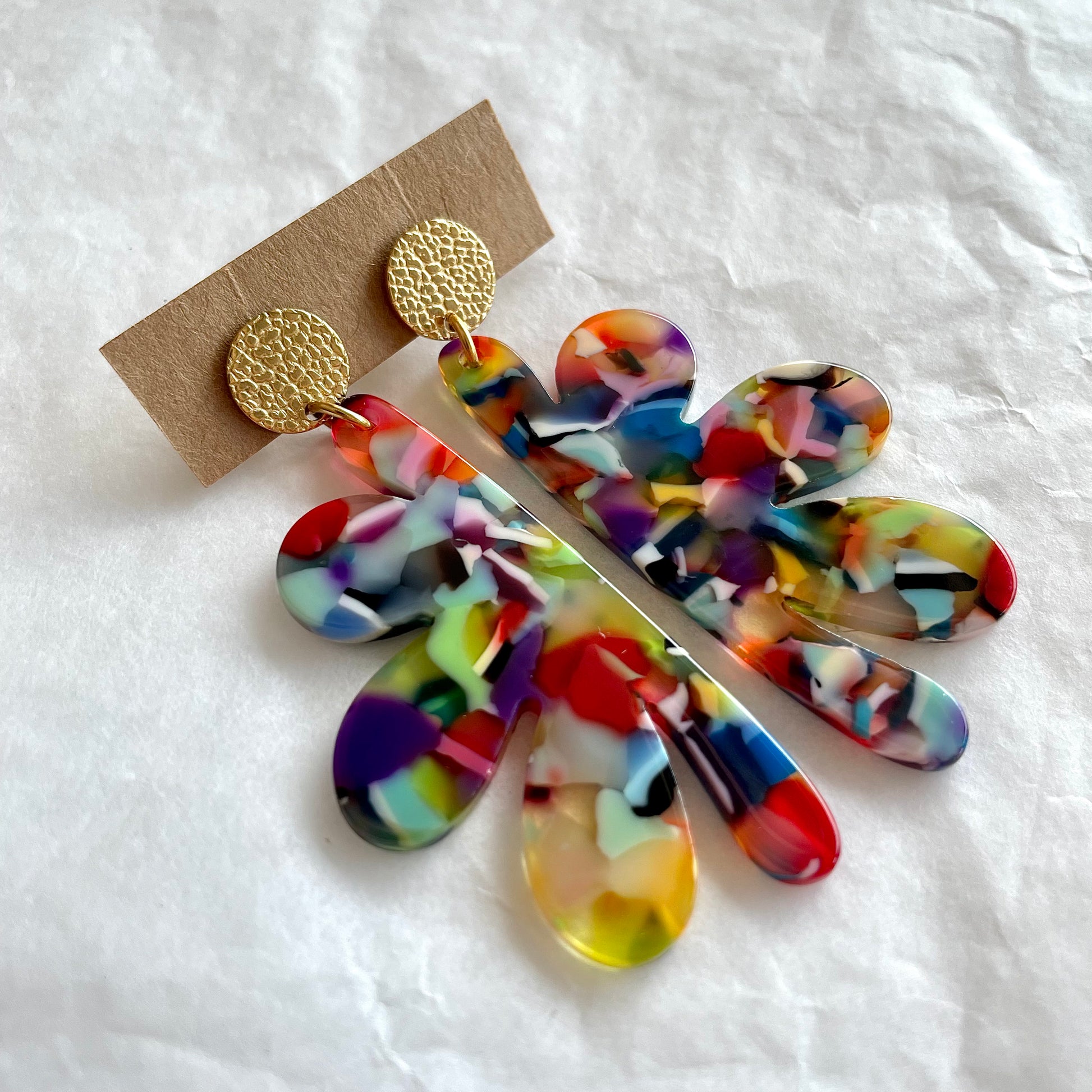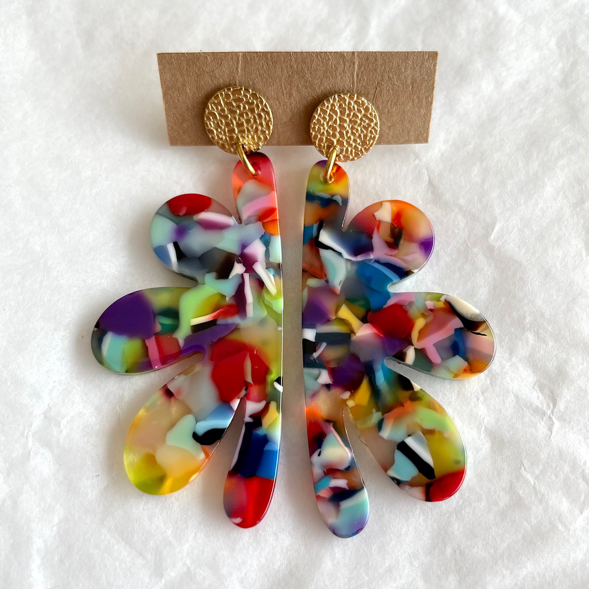 Boucles d'oreilles en acétate de cellulose. L'acétate de céllulose est une matière noble, obtenue à partir d'extrait de fleur de coton.