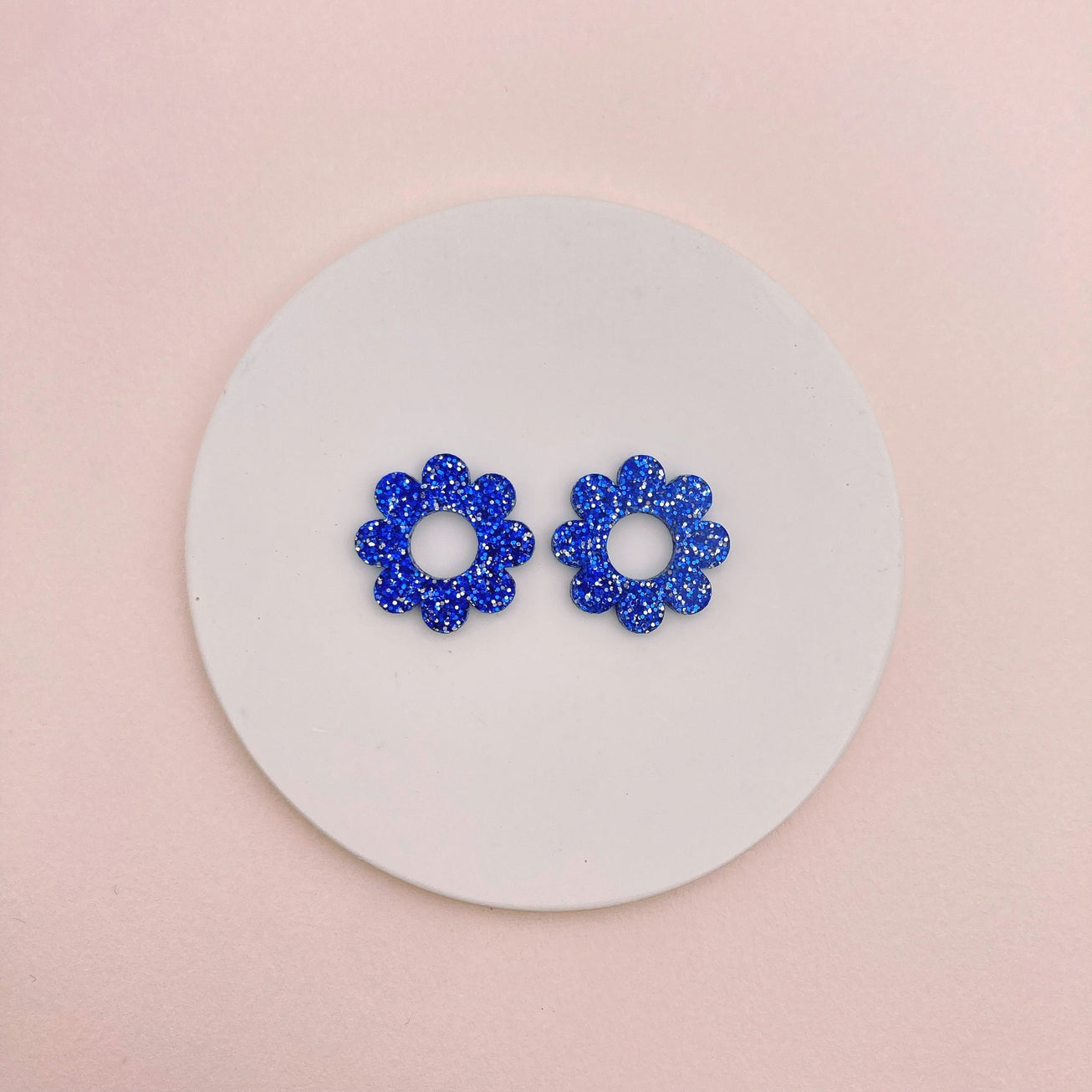 Boucles d'oreilles avec puce en acier inoxydable plaqués or 18 carats et partie fleurs en acrylique. Ces boucles d’oreilles originales et colorées sont parfaites pour accessoiriser vos tenues.