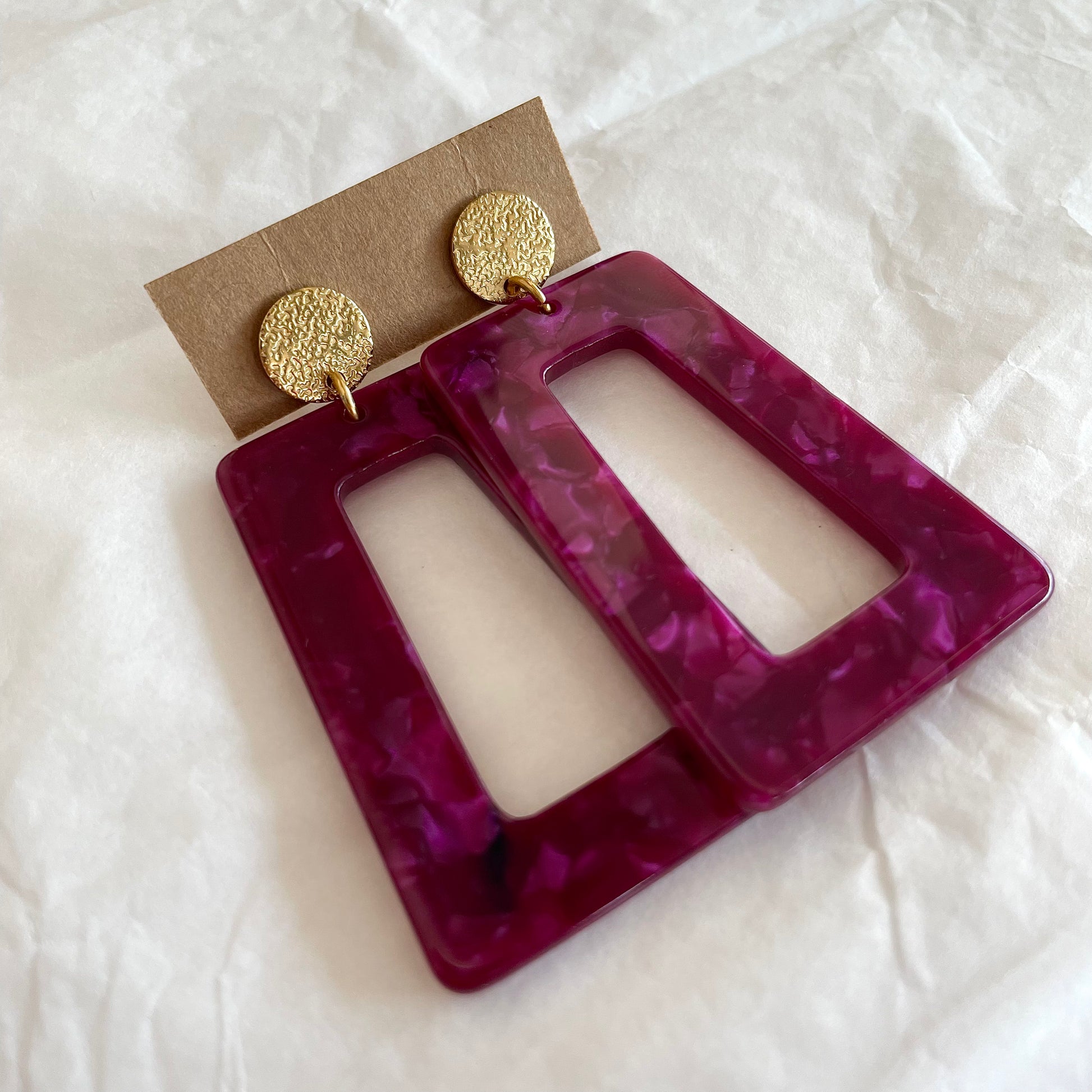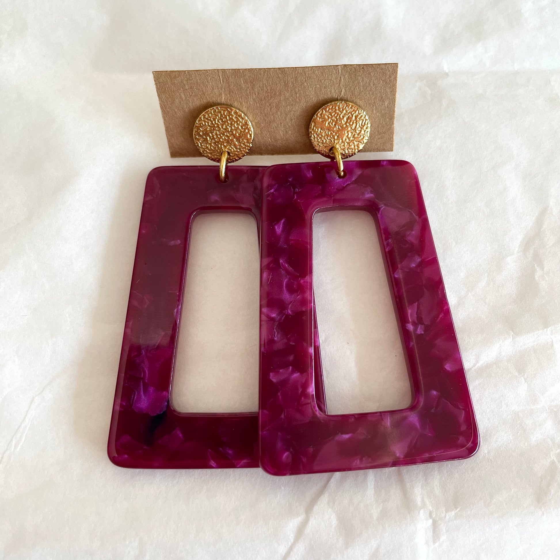 Boucles d'oreilles en acétate de cellulose. L'acétate de céllulose est une matière noble, obtenue à partir d'extrait de fleur de coton.