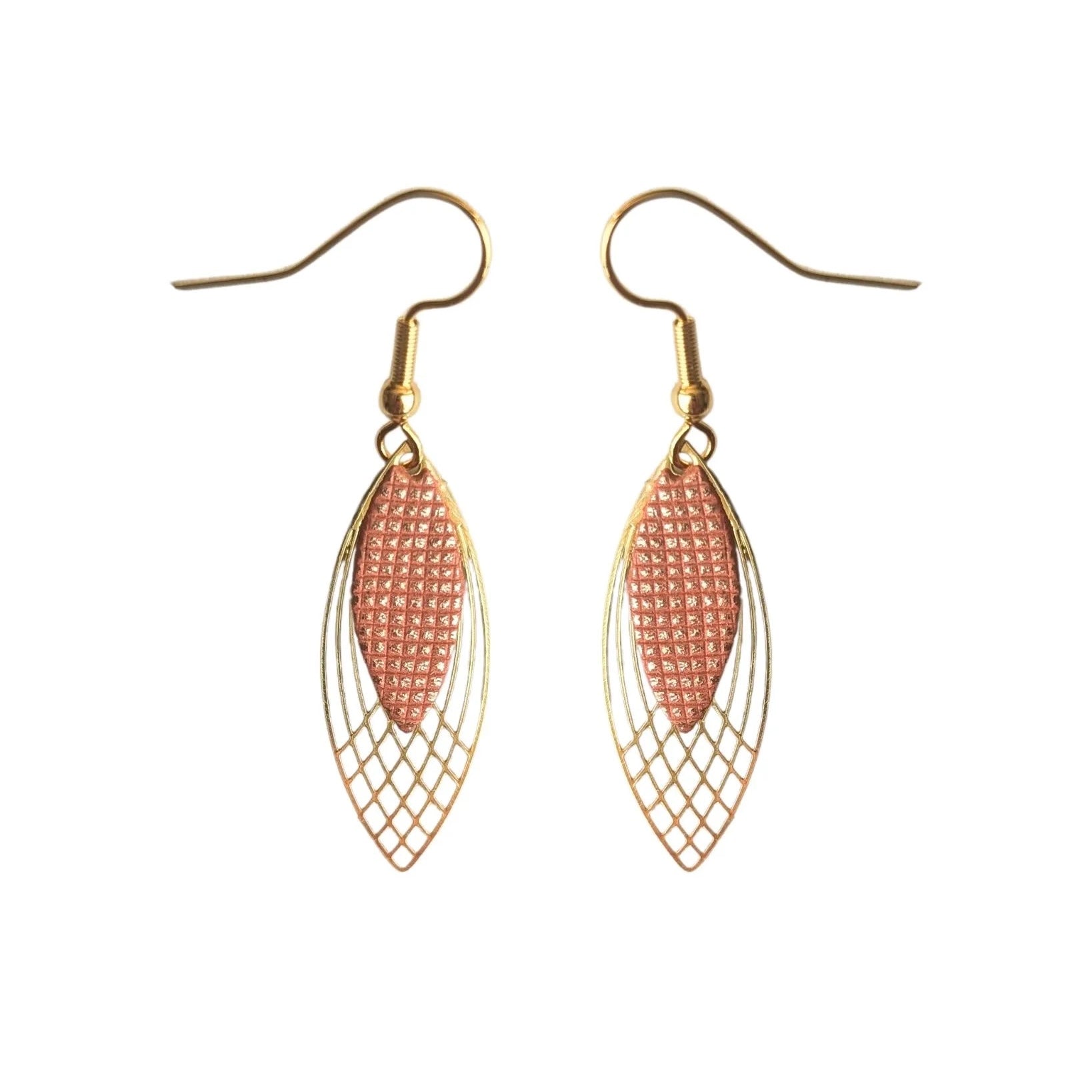 Cette paire de boucles d'oreilles est composée d’une pétale en cuir recyclé pour un joli effet vintage. Le découpage et l'assemblage sont réalisés à la main.