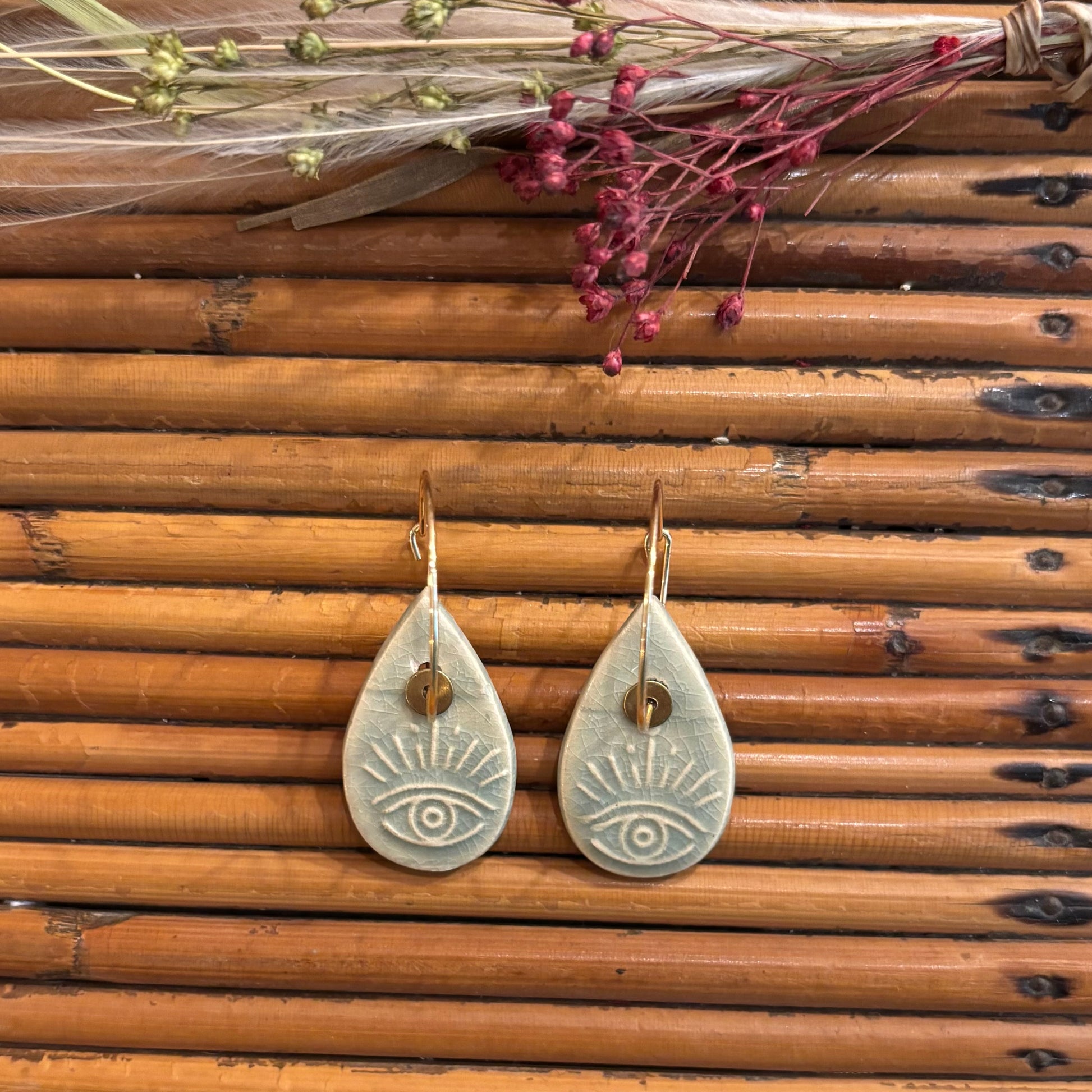 Boucles d'oreilles en céramique œil nuances vertes