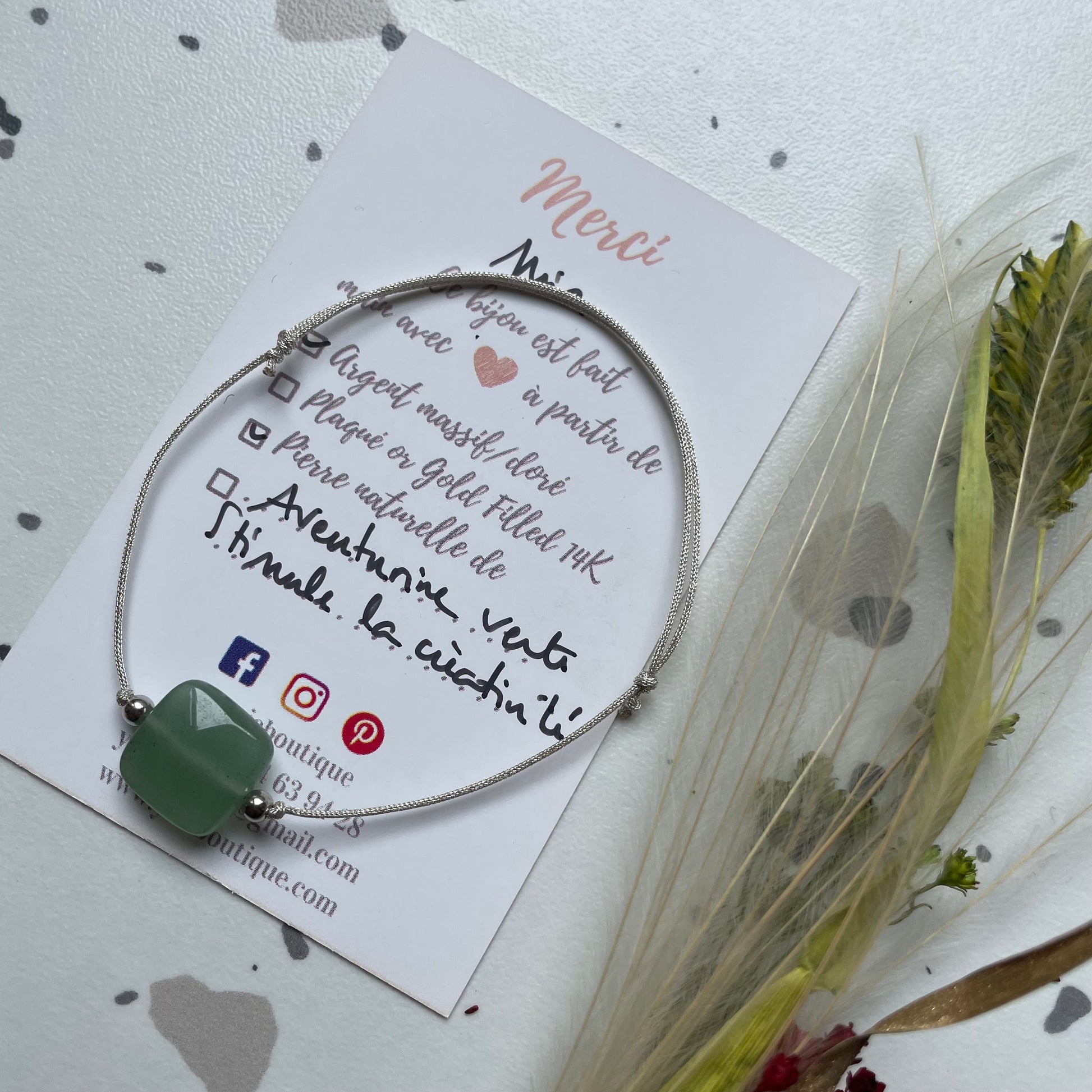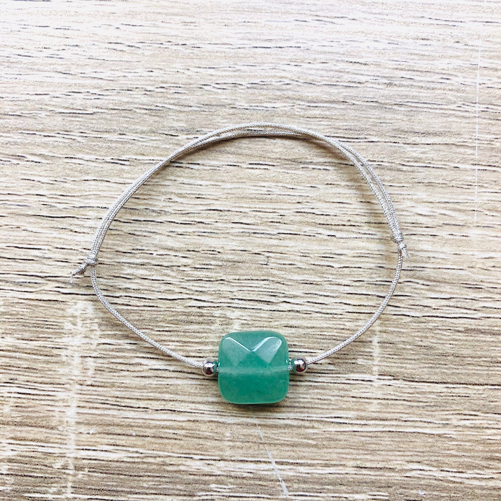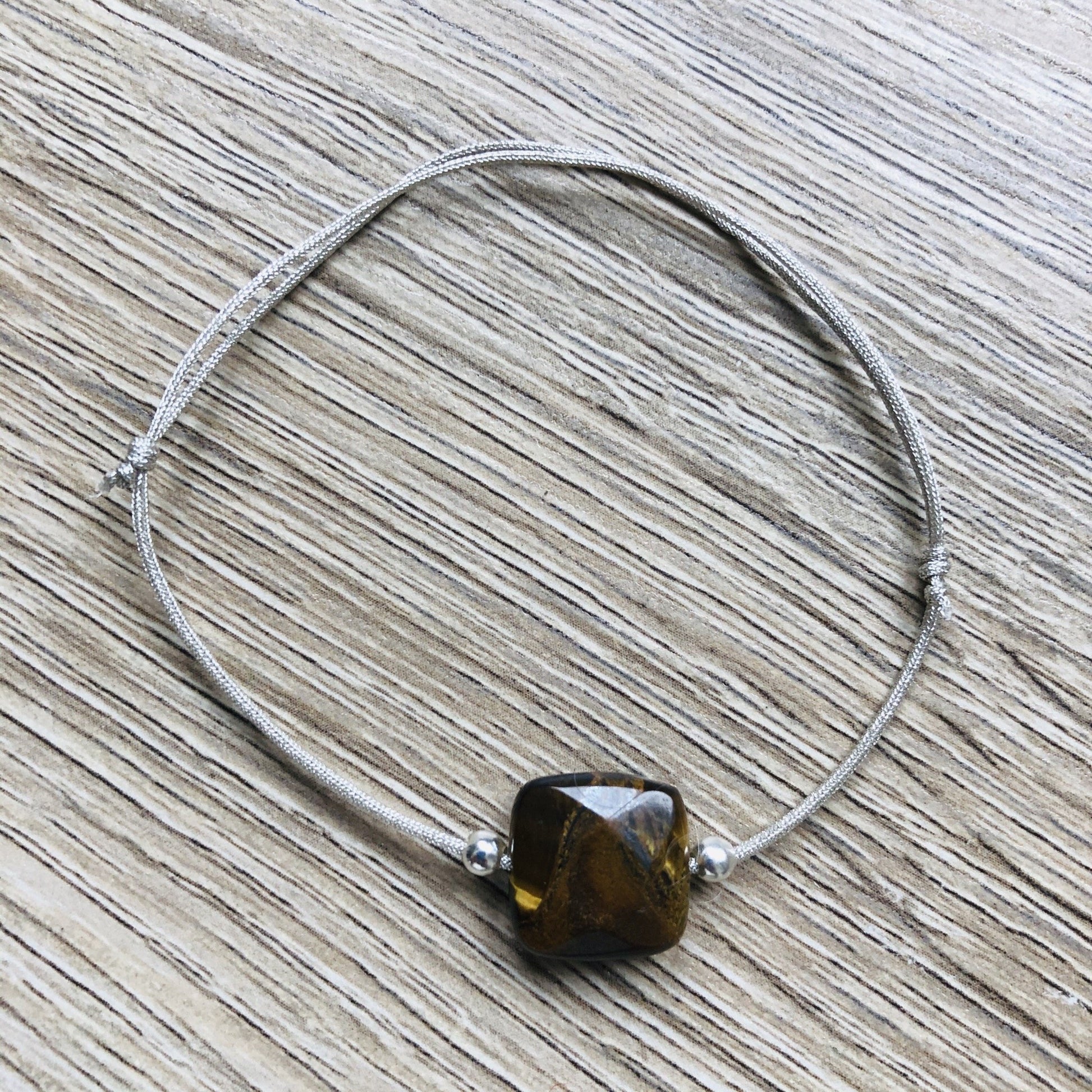 - Matériaux : cordon de soie japonaise ajustable grâce à des noeuds coulissants, et pierres semi-précieuses