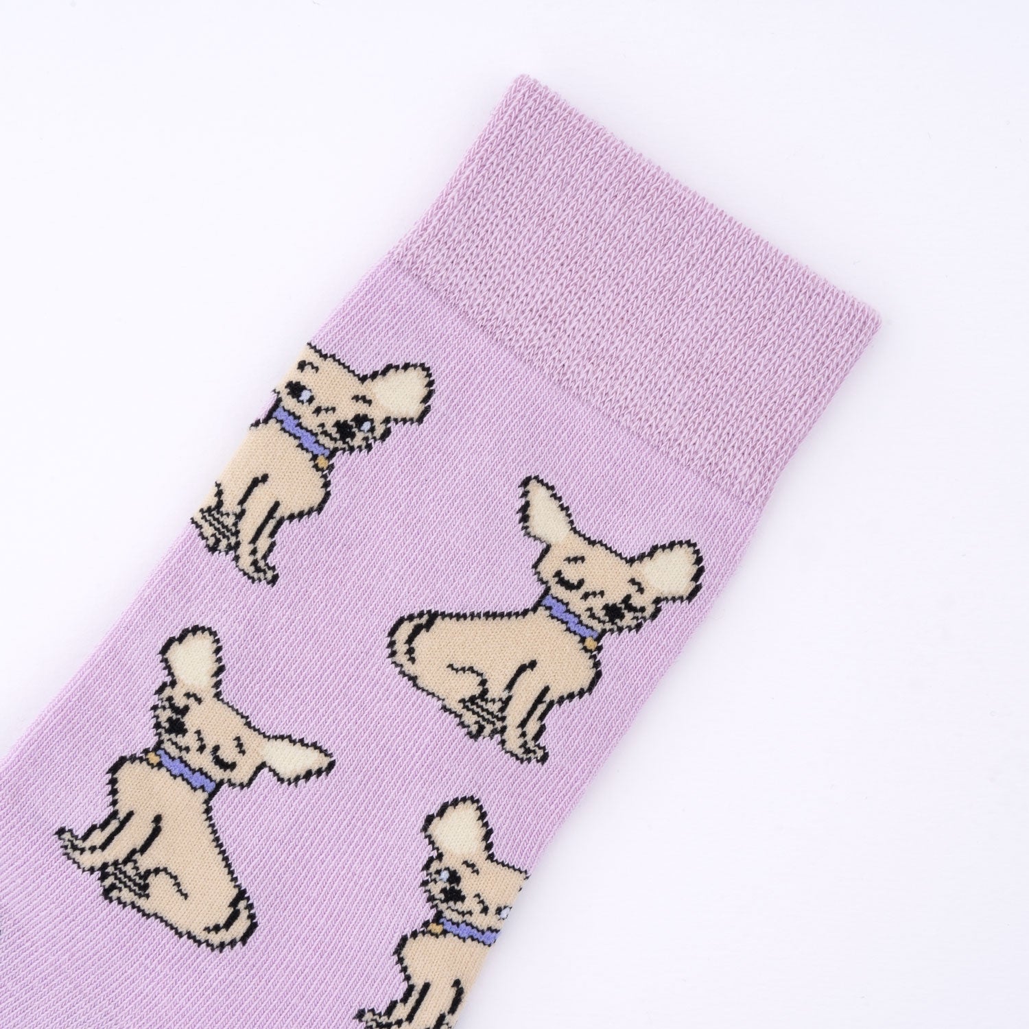 Retrouvez l'univers coloré de l'illustratrice Coucou Suzette avec cette paire de chaussettes représentant un tout mignon Chihuahua !