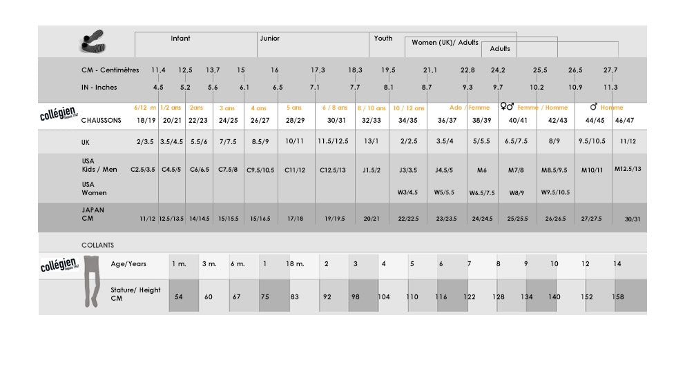 Les célèbres chaussons-chaussettes brevetés par la marque Collégien en 1947, avec leur semelle ergonomique, anti-dérapante et anti-transpirante, pour un confort optimal jusqu'à la pointe des orteils !