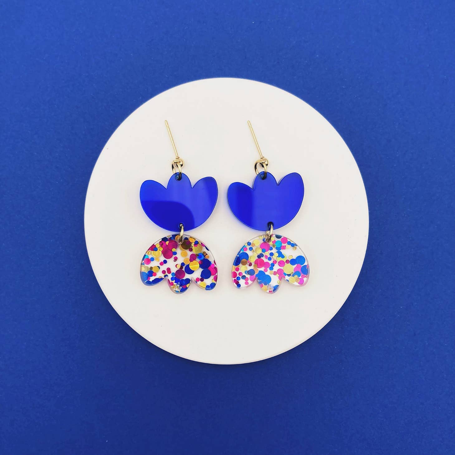 Boucles d'oreilles avec puce en acier inoxydable et partie pendante en acrylique. Ces boucles d’oreilles originales et colorées sont parfaites pour accessoiriser vos tenues.