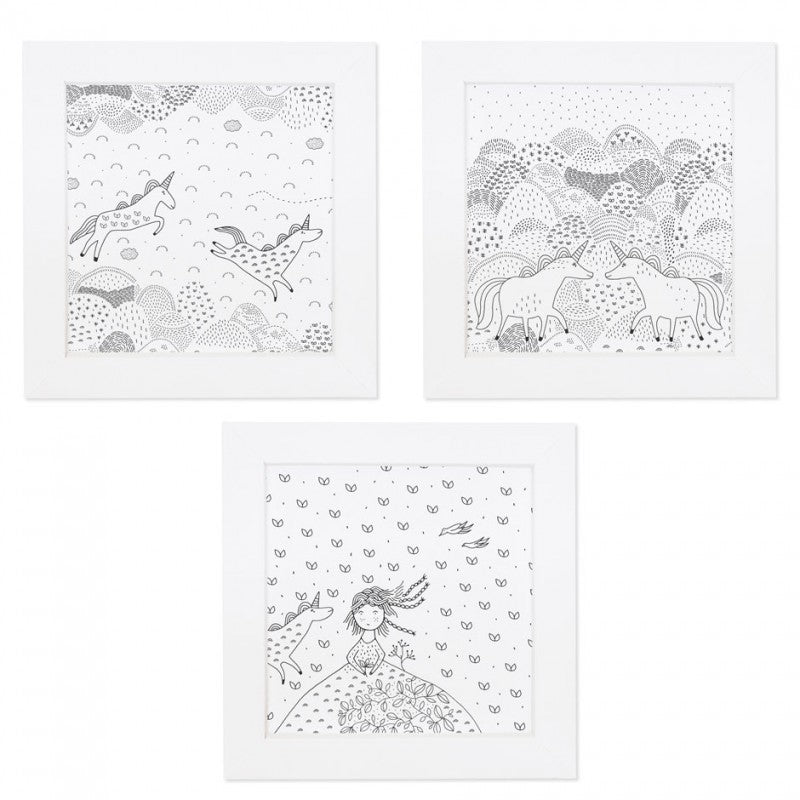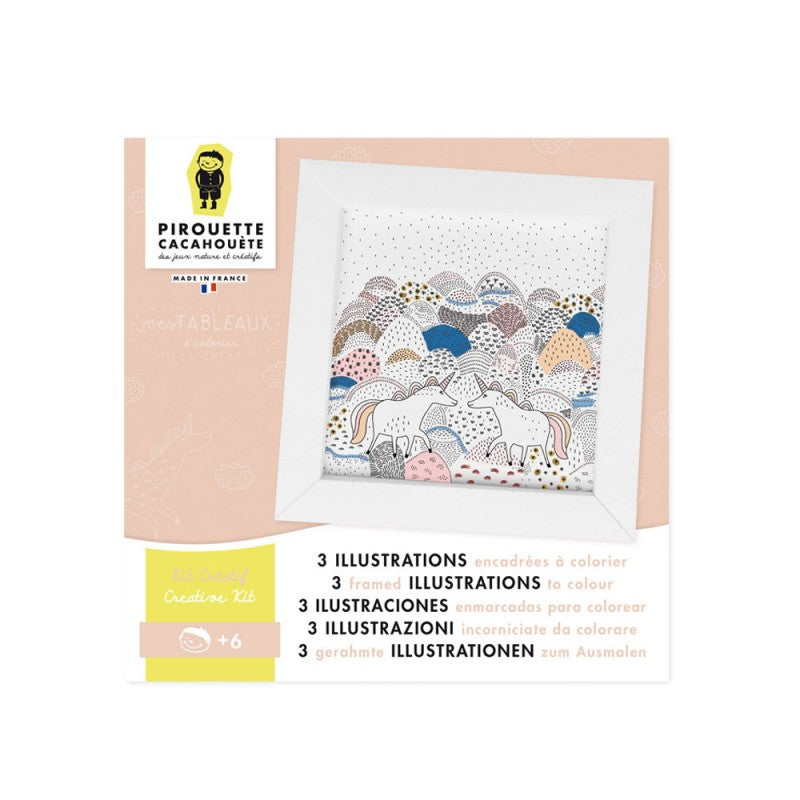 Coloriez les 3 tableaux avant de rabattre les bords pour créer le cadre. Une super activité pour jouer aux artistes et décorer sa chambre.