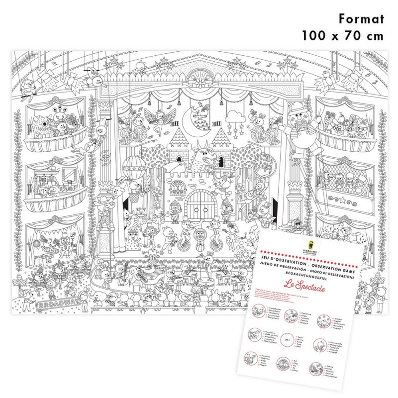 Un poster géant donnant un espace artistique sans limite aux enfants. À colorier seul ou à plusieurs, à accrocher au mur ou à placer au sol, ce poster occupera les enfants pendant des heures. Un poster Cherche et trouve accompagne le coloriage pour partir à la recherche des petits détails de l’illustration.