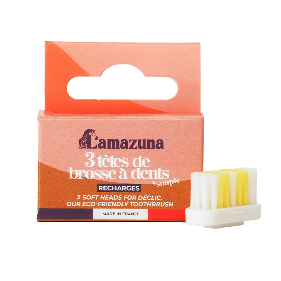 3 mois se sont écoulés et vous avez bien frotté ? Il est temps de changer votre tête de brosse à dents ! Ce lot comprend 3 têtes souples compatibles avec les brosses à dents Lamazuna.